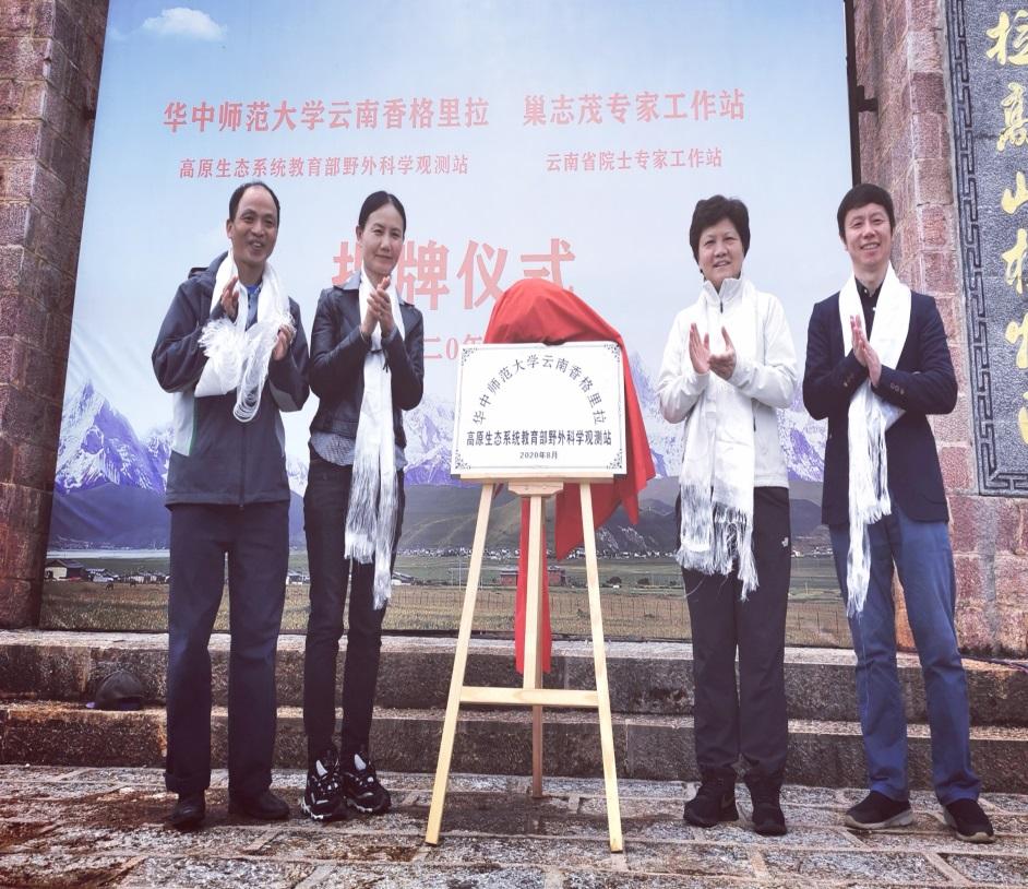 华中师范大学校长郝芳华与迪庆州副州长和丽萍为教育部野外科学观测研究站揭牌
