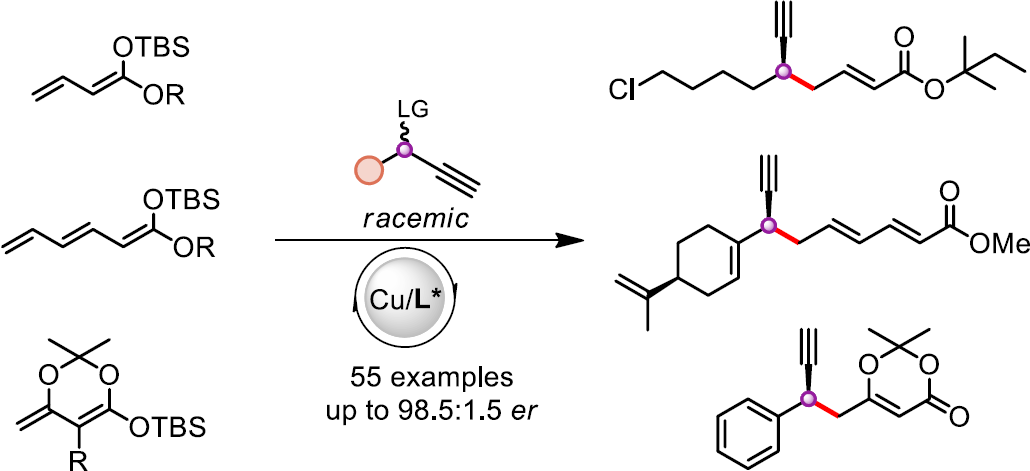 图1.催化不对称插烯与双插烯炔丙基取代反应
