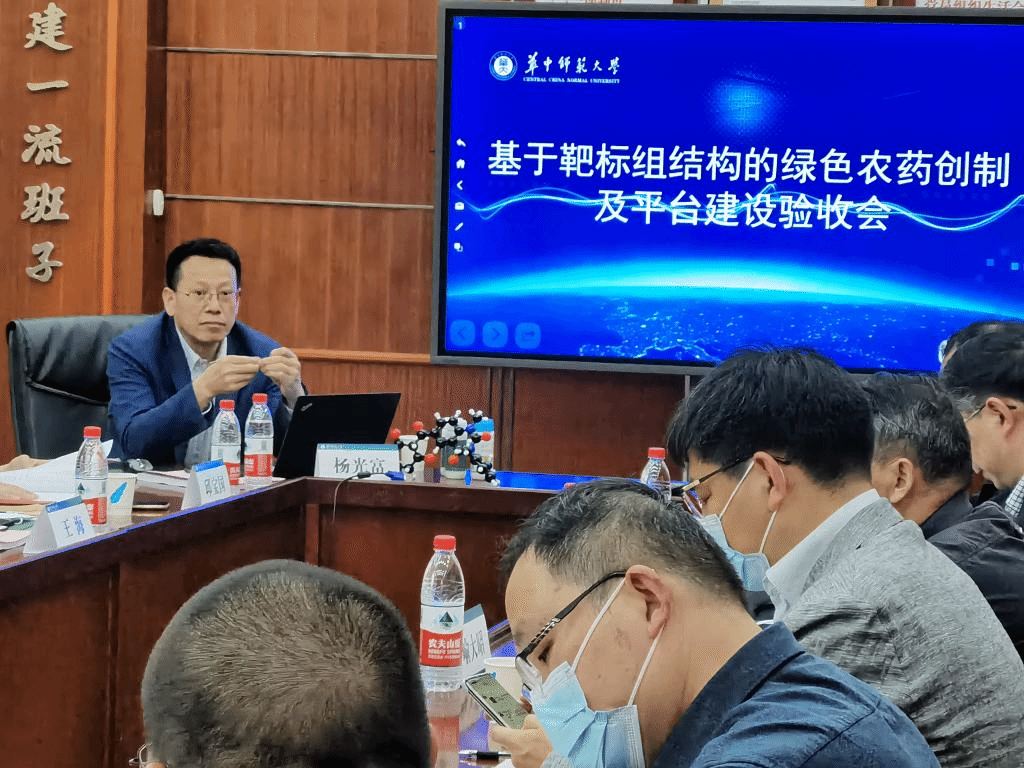 (通讯员:王珏 摄影:杨备) 4月21日下午,湖北省技术创新专项重大项目“基于靶标组结构的绿色农药创制及平台建设”项目验收会在我校召开。湖北省科技厅副厅长杜耘、省科技厅基础处、诚信监督处以及高新中心等相关领导出席会议。湖北省农科院研究员喻大昭、武汉大学化学与分子科学学院李振教授、华中科技大学药学院万谦教授、中国地质大学材料与化学学院余家国教授以及湖北振宇会计师事务有限公司高级会计师宁国强等5名专家对《基于靶标组结构的绿色农药创制及平台建设》项目进行验收。校长郝芳华、副校长彭双阶及科技处、化学学院相关负责人和课题组成员参加此次会议。会议由省科技厅高新技术发展促进中心二级调研员叶林主持。