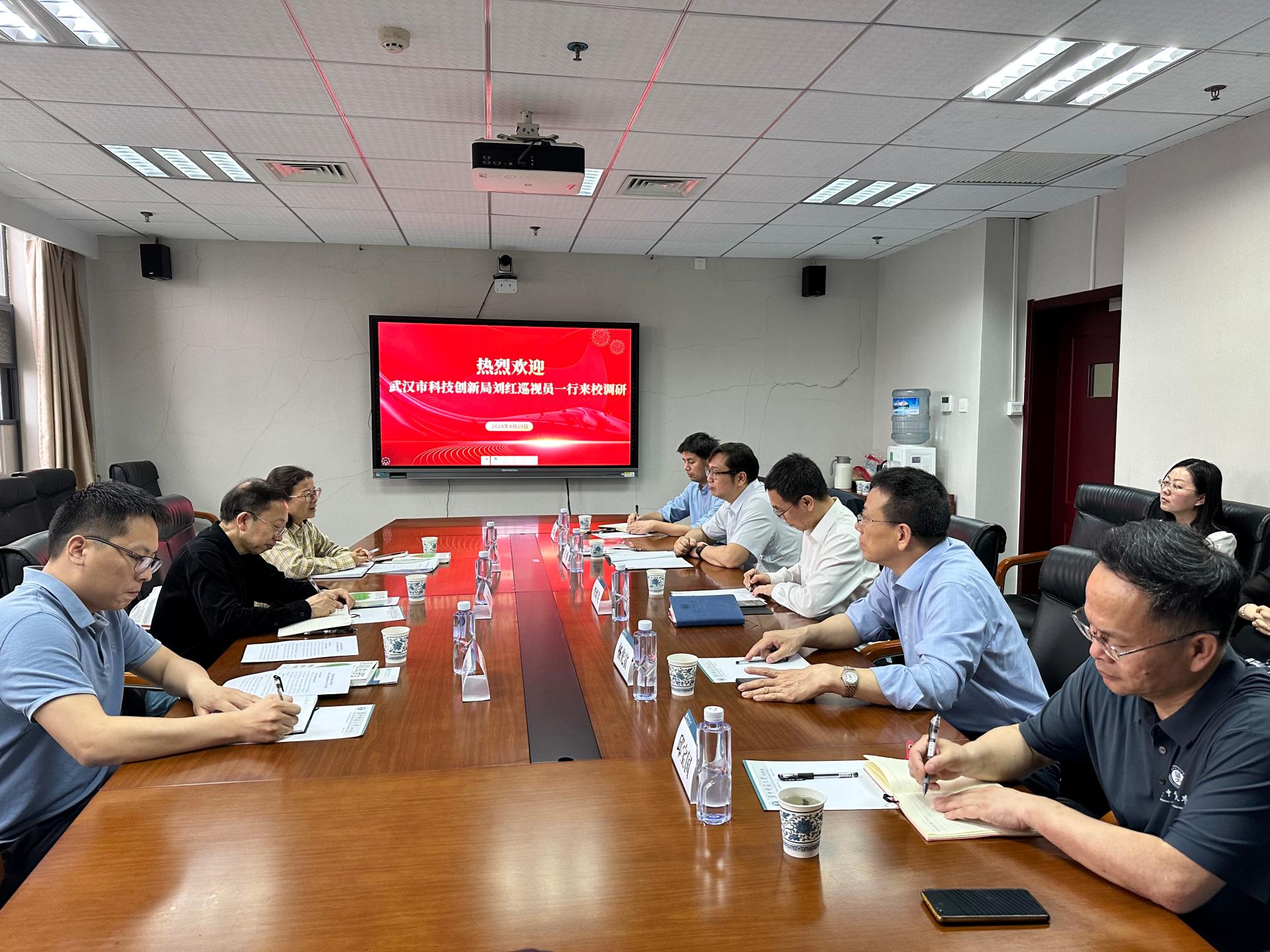 (通讯员 朱潇潇)4月29日下午,武汉市科技创新局二级巡视员刘红一行来校调研绿色农药全国重点实验室建设情况。刘红一行通过现场考察、听取汇报、座谈交流调研了解实验室建设的有关情况。市科创局创新平台处处长王建平、一级主任科员刘维康,华中师范大学副校长李鸿飞陪同调研。调研座谈会由科技处处长王海主持。