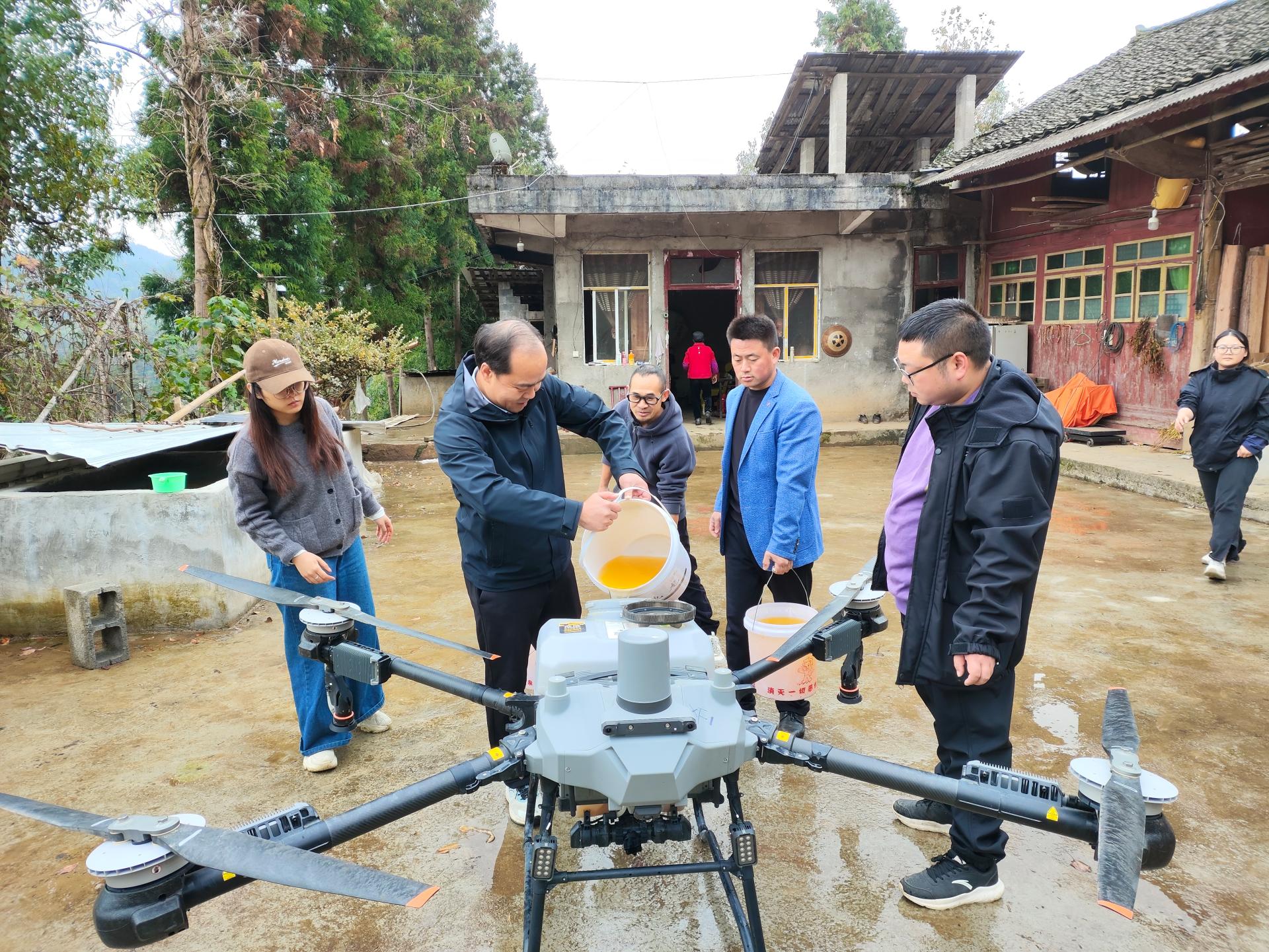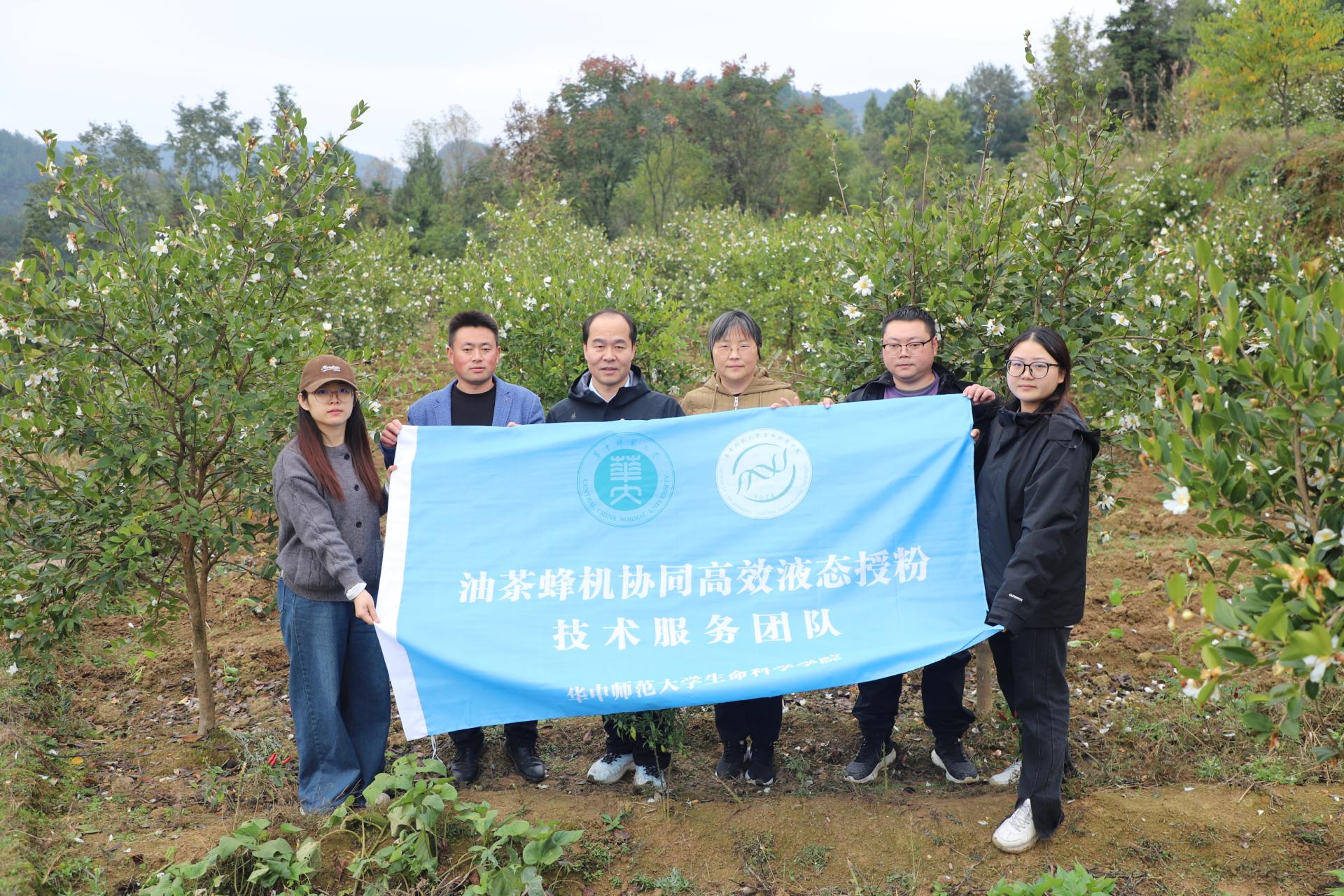 (通讯员 刘树楠)为进一步提升油茶产量和品质,推动油茶产业高质量发展,11月9日,湖北省科技厅“三区”人才、华中师范大学生命科学学院“油茶蜂机协同高效液态授粉”科研团队负责人艾辉教授、科技处刘树楠老师与恩施土家族苗族自治州咸丰县林业局产业办工作人员一行在咸丰县唐崖镇官家堡村开展蜂机协同油茶无人机辅助授粉试点。