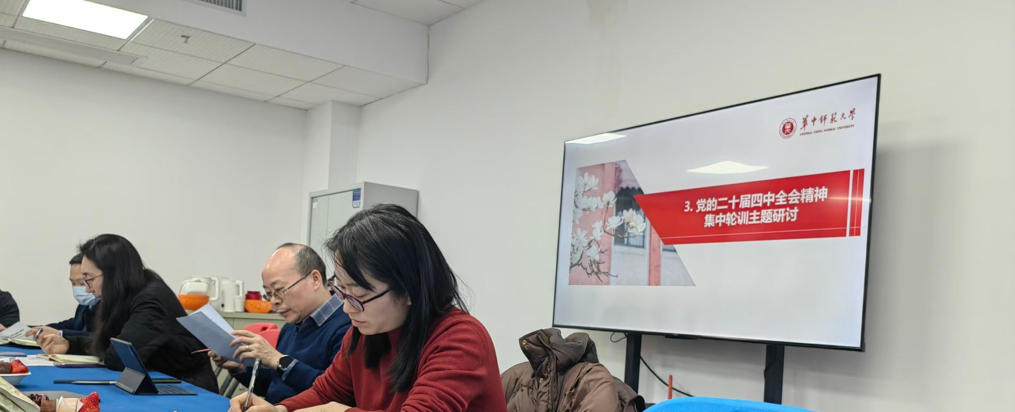随后,科技处班子成员围绕党的二十届四中全会精神轮训收获开展研讨,结合工作实际交流感悟。集体学习环节干货满满,张晓骏、徐洪峰、杨备分别领学中央政治局民主生活会精神、习近平总书记重要文章《学习贯彻好党的二十届四中全会精神》、中央经济工作会议精神。自由交流环节,朱潇潇表态将加强业务学习,积极向党组织靠拢。